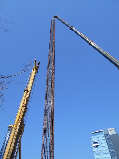 La această lucrare am introdus în premieră în România piloții forați cu baza lărgită la diametrul de 2,60 m.